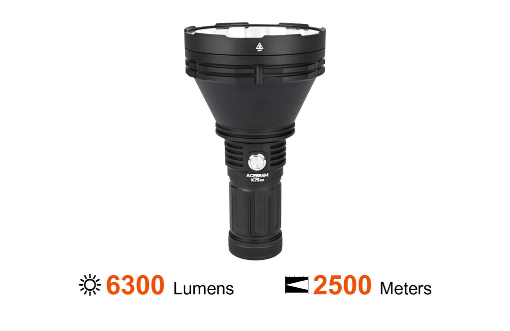 Experience the pinnacle of long-distance illumination with the Acebeam K75 2.0, one of the world’s most powerful throw flashlights. Designed for search and rescue, hunting, and tactical operations, it delivers a staggering 2.5 kilometers (1.5 miles) of beam distance with a maximum output of 6300 lumens.