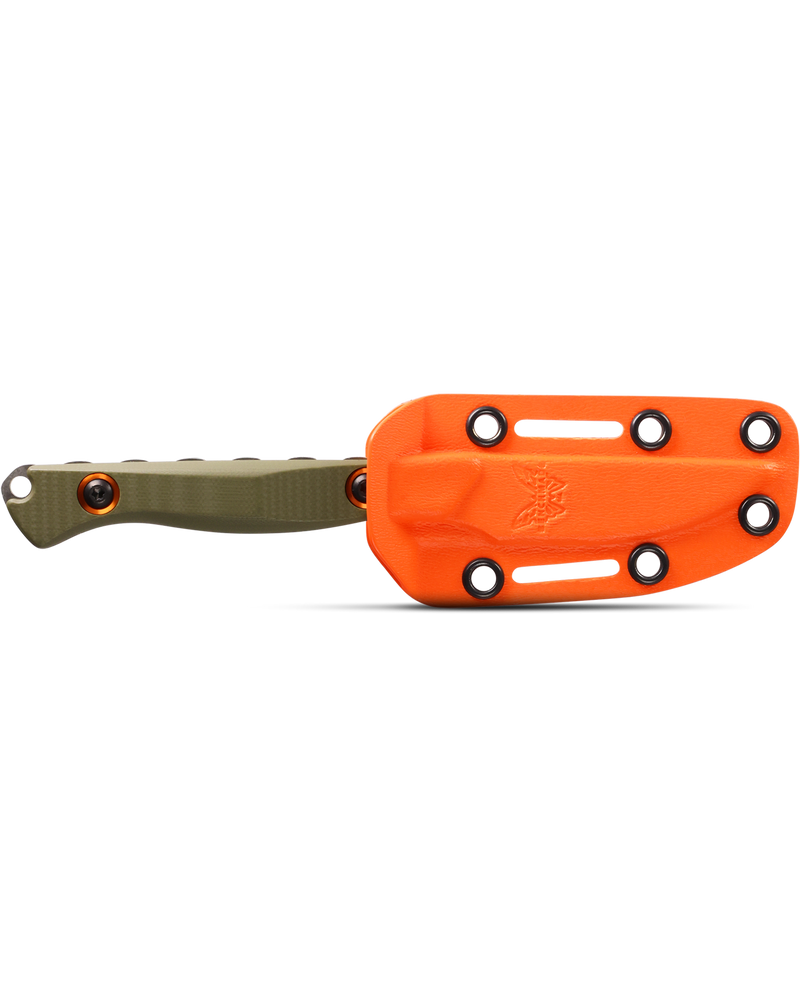 The Flyway®️ has proven its worth as the ultimate upland game and waterfowl fixed blade. The 15700-01 maxes out on edge retention with CPM-S90V steel to keep you in the field late into the season. Further changing things up, the ergonomic handle now includes OD Green G10 handle scales with orange accent rings for visibility, and the orange Boltaron®️ sheath is perfect for securing to a chest rig or slipping into a pack.