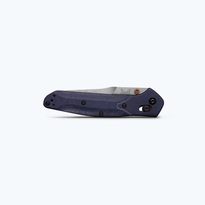 The Benchmade Osborne 940‑04 blends rugged style with everyday functionality. Featuring a 3.40″ M390 reverse tanto blade, denim Micarta handles, and the proven AXIS Lock, it delivers a balance of premium materials, slim carry, and reliable performance — all in a USA‑made design built for serious everyday carry.