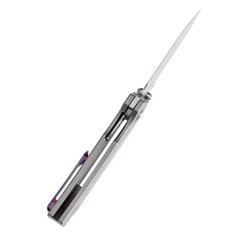 The knife features a one-piece titanium pocket clip, crafted for a secure carry and quick, easy access.