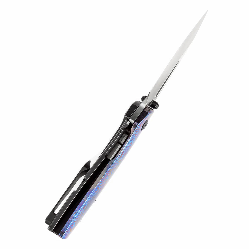 The blade is crafted from Crucible CPM 20CV steeland beautiful Damscus, while the dual-material constructed handle offers a range of high-end materials, including Camo Carbon, Gecko Camo Carbon, Timascus, 6al4v Titanium, and American Made Micarta,offering customers diverse choices.