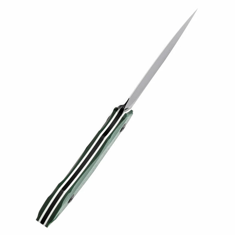 Green G10 Handle: Durable, lightweight, and adventure-ready grip.