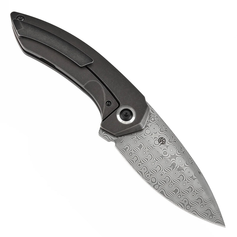 -The Odd 21 folding knife boasts a handle crafted from titanium, featuring gently curved lines that conform perfectly to the palm. With handle access on both sides, the grip is enhanced for greater comfort and security. The hole design not only enhances aesthetics but also improves traction, ensuring a dependable hold during use. This ergonomic design marries style and functionality for a satisfying handling experience.