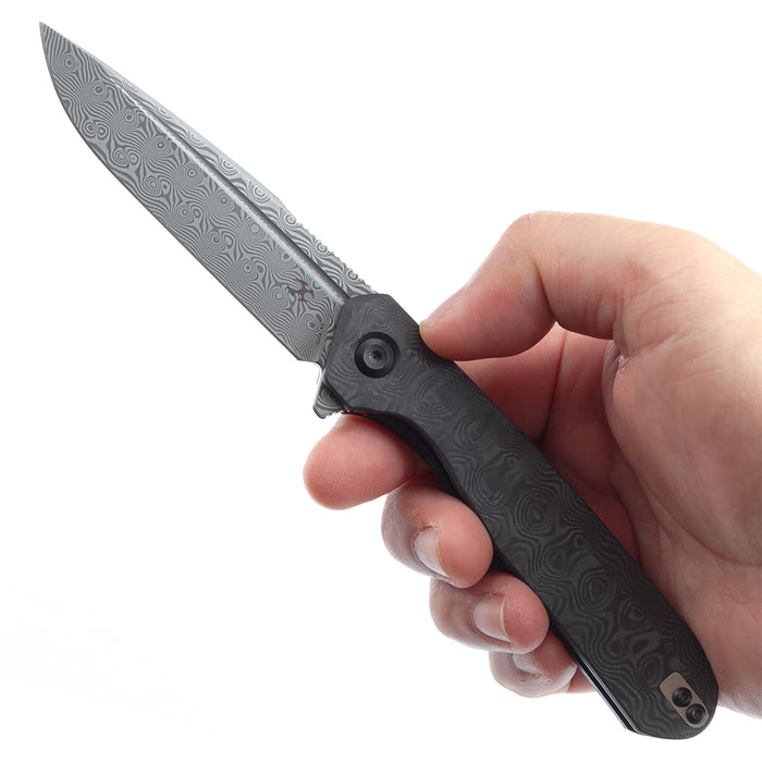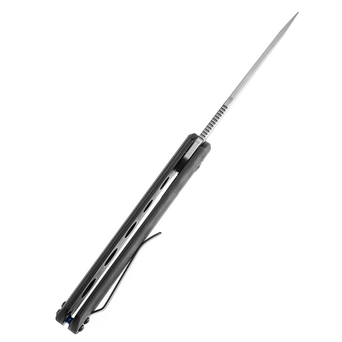 It’s name was inspired by Qilin is a legendary hooved chimerical creature that appears in Chinese mythology, and is said to appear with the imminent arrival or passing of a sage or illustrious ruler.It has recurved tanto shaped blade and CF/G10 handle with a steel linerlock. Comes in variety of different color options and blade finishes.