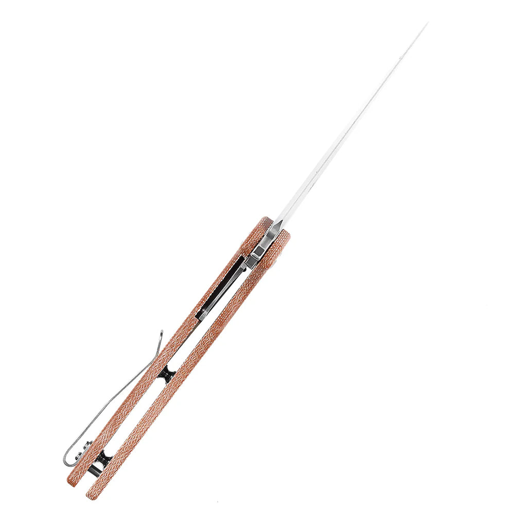 - Brown Micarta handle for a smooth gripping surface that is comfortable in the pocket or hand.