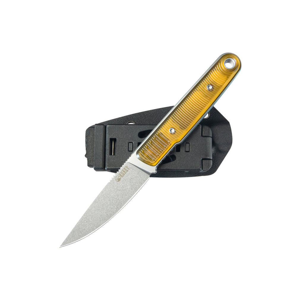 Its distinctive Ultem handle provides a lightweight yet strong grip with excellent durability and a unique translucent amber appearance. The ergonomic design ensures comfort during prolonged use, while the full tang construction maximizes strength for heavy-duty cutting tasks.