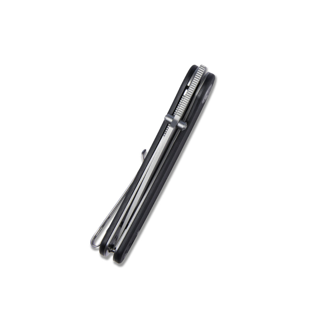 Its ergonomic black G10 handle offers a lightweight yet secure grip, ensuring comfort and control during prolonged use. The linerlock mechanism provides safe, secure blade lockup, while the flipper tab with caged ceramic ball bearings ensures rapid, effortless deployment.