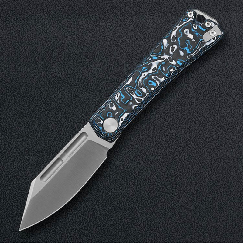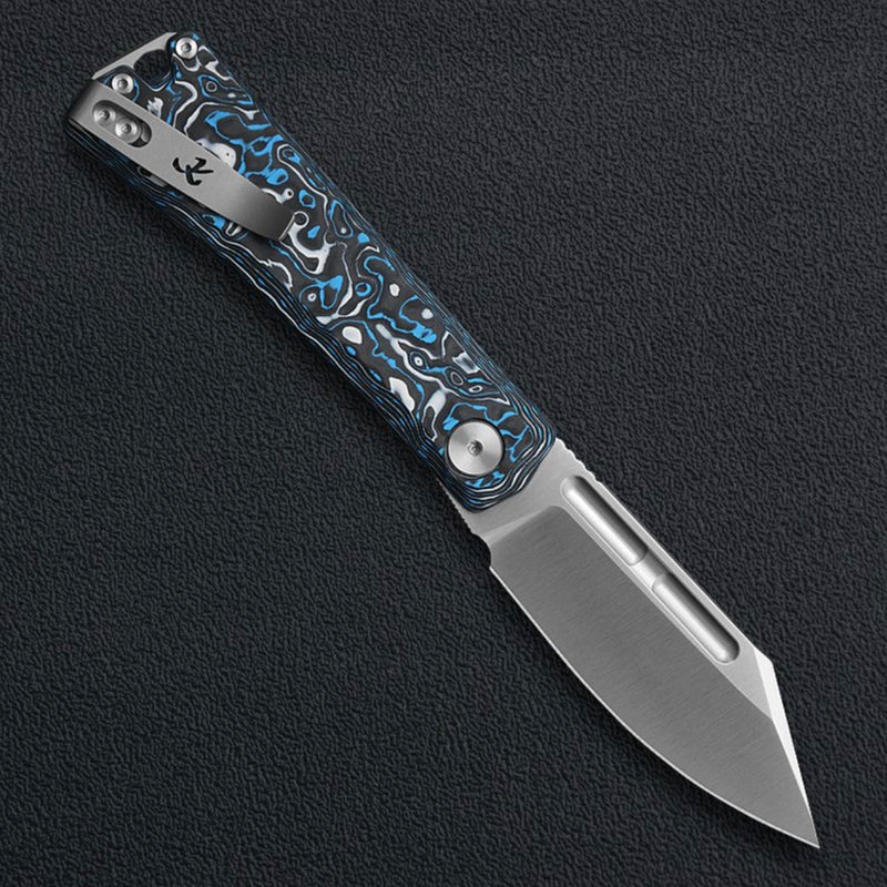 Kunwu Geezer Bead Blast 3.22in Elmax Blade Blue Resin Carbon Fiber Handles J708A-2