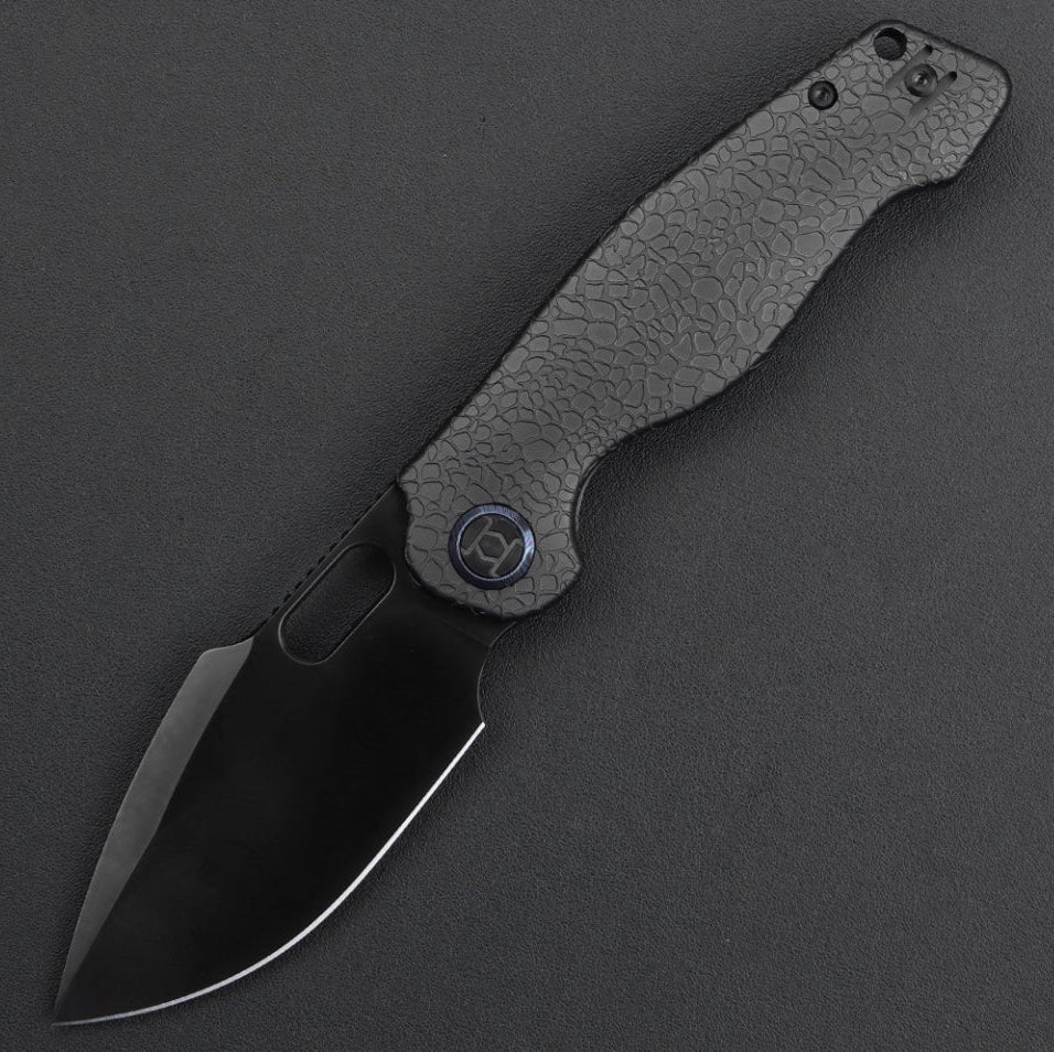 The stonewashed DLC titanium handle showcases a unique honeydew texture for a secure grip and modern aesthetic. At 6.27 ounces, the Gringo feels solid and balanced in hand, while the titanium pocket clip ensures confident carry. With its elite steel, aggressive style, and rock-solid build, the Gringo is built for enthusiasts who expect more from their gear.