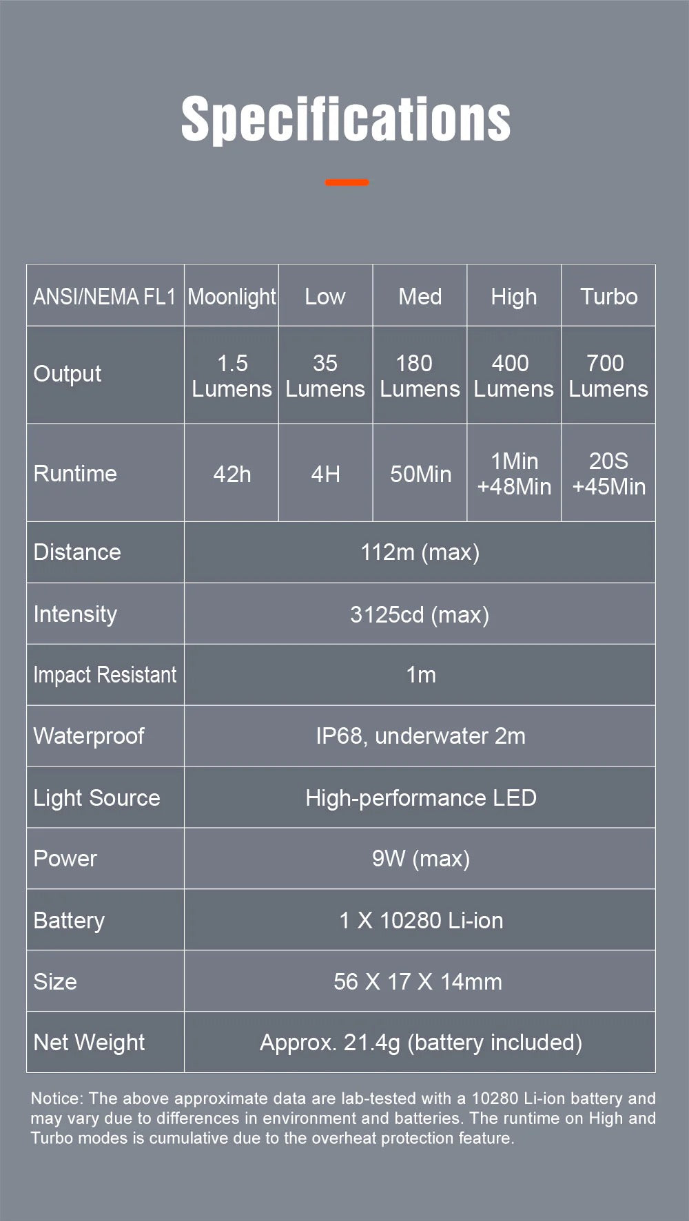 Quick USB‑C Recharge – Comes with a built-in USB‑C 10280 Li-ion battery. 2-hour full recharge, up to 42h runtime on lowest mode