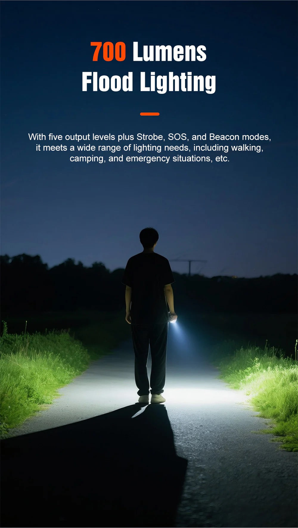5 Versatile Modes – Moonlight / Low / Medium / High / Turbo plus strobe, SOS, and beacon—perfect for varying tasks and emergencies