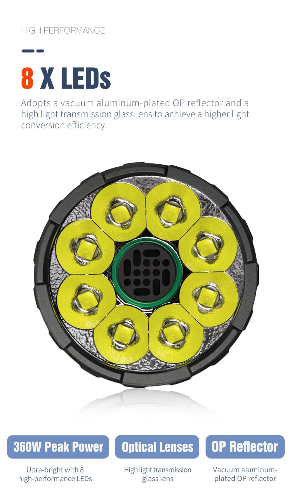 | LEDs | 8 × Cree XHP50.2 |