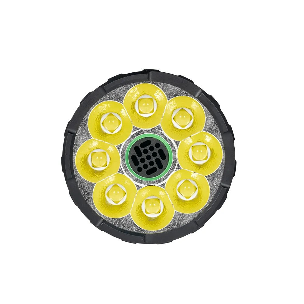 The Lumintop Mach 3.0 is a professional‑grade flood flashlight engineered to deliver maximum output and reliabilityin the most demanding environments. Outfitted with eight Cree XHP50.2 LEDs, it pushes an incredible 50,000 lumenswith a beam distance up to 650 meters and a peak intensity of 107,500 candela.