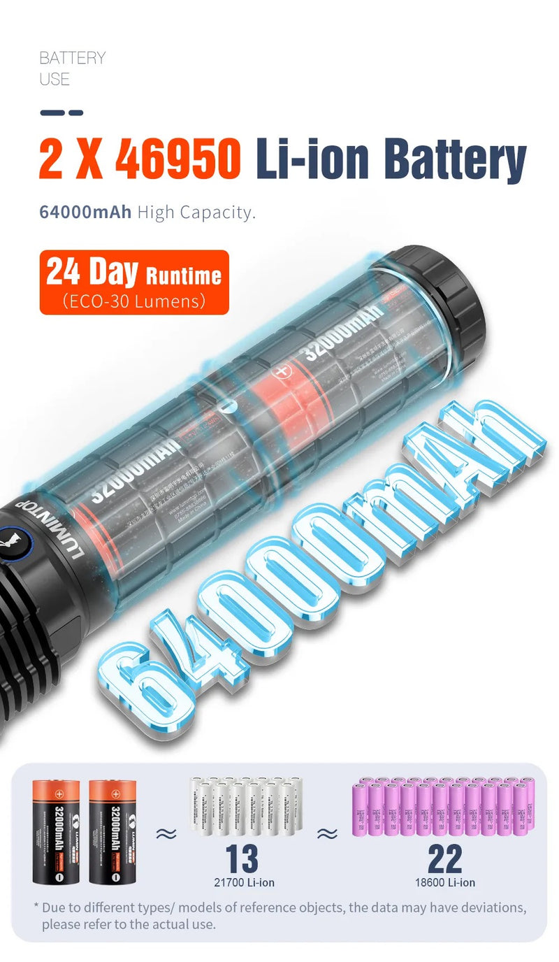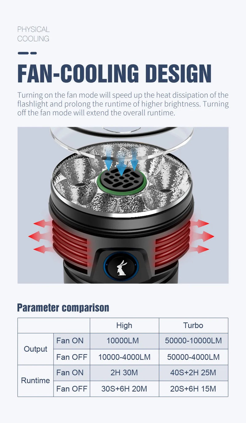 The Lumintop Mach 3.0 is a 50,000‑lumen powerhouse built for search and rescue, professional work, and extreme outdoor adventures. With an integrated fan‑cooling system and USB‑C fast charging, it delivers unmatched brightness and reliability in the toughest conditions.