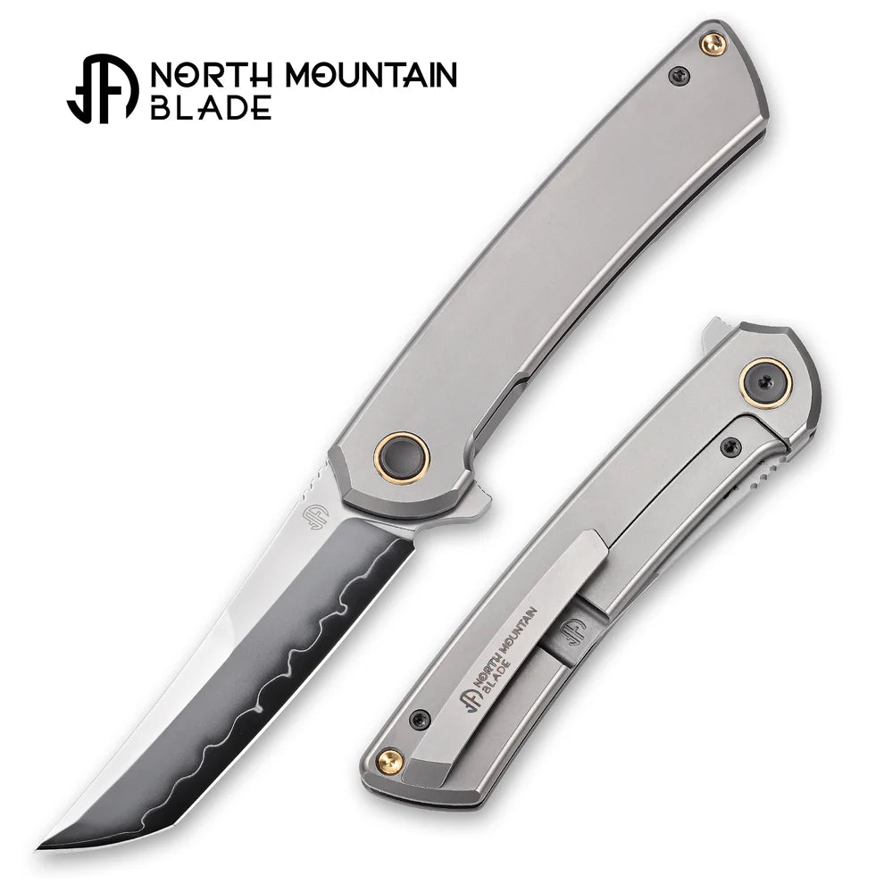 North Mountain Zero 3.5" Tanto Blade Flat Titanium Handles w/ Smooth Flipper