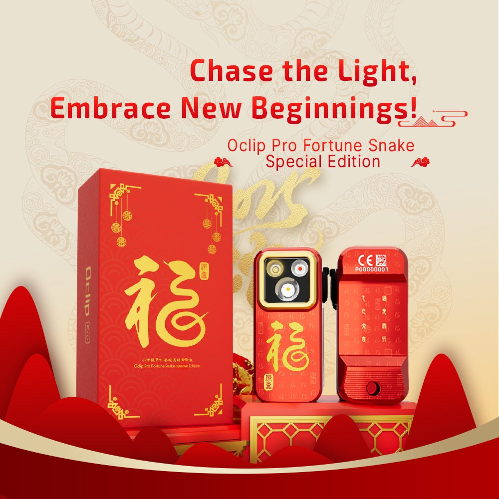 Olight Oclip Pro 500 Lumen Clip on Flashlight W/ Floodlight, Spotlight, and Red Light - Fortune Snake Special Edition