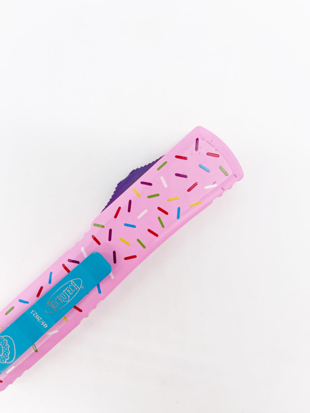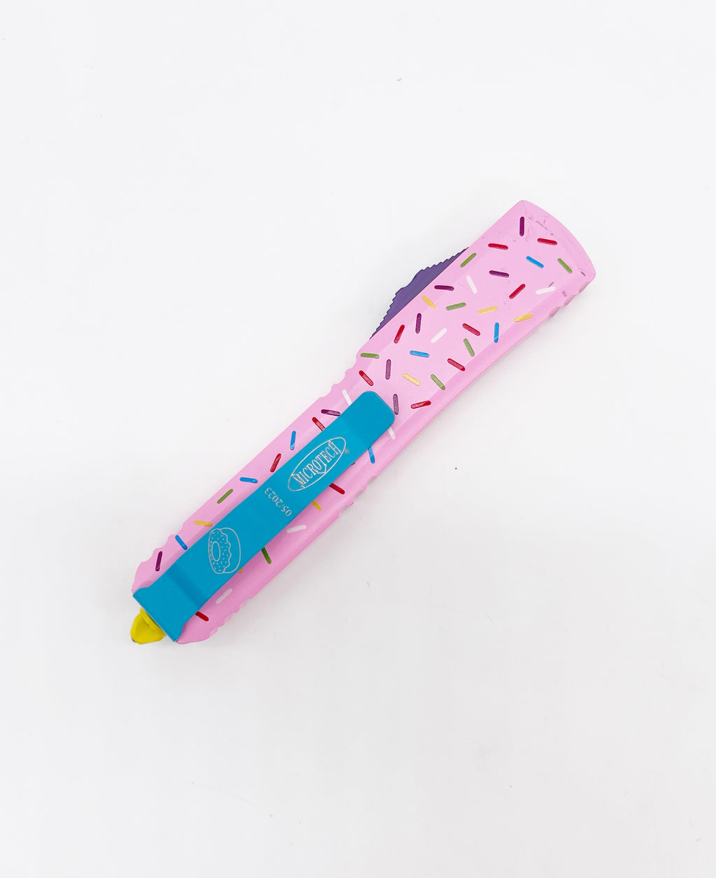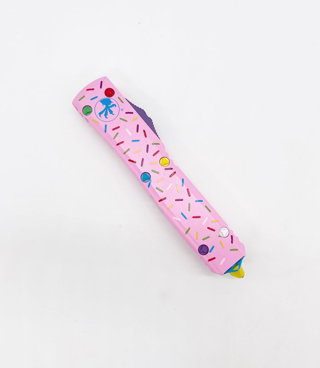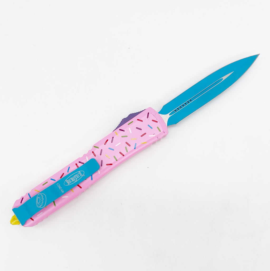 Pre-Owned Microtech "Donut" Ultratech Double Edge Dagger OTF. Knife does have light wear in a few spots, still has factory edge. No box. All sales final on pre-owned items.