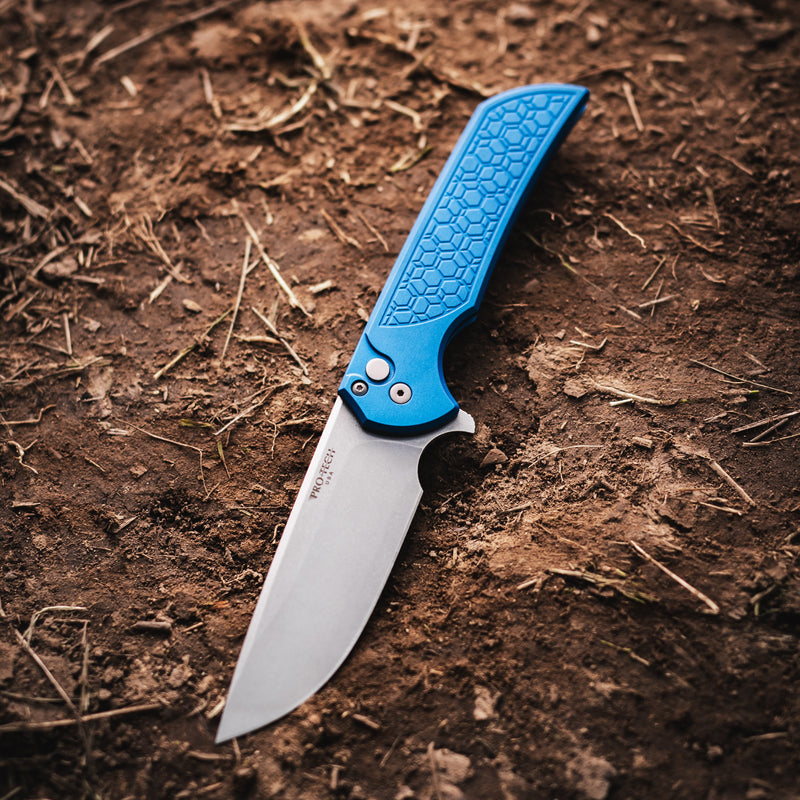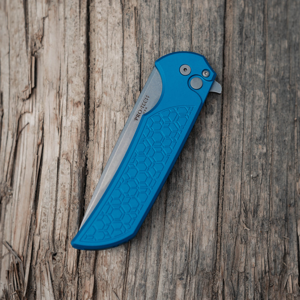 Mordax - GRIDLOCK textured blue handle, Magnacut blade, plain edge.