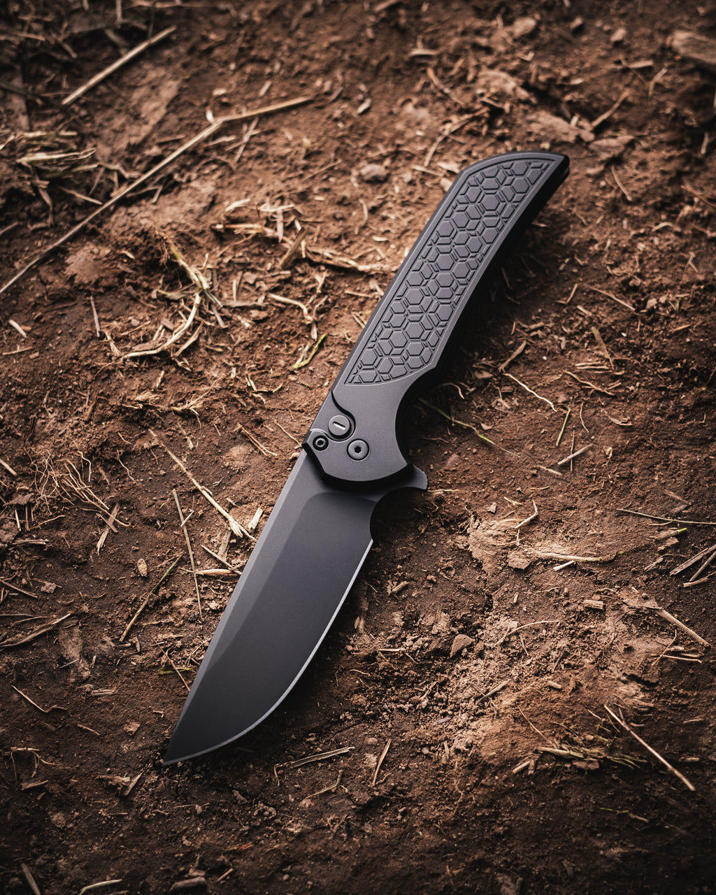 Pro-Tech Mordax Operator Black Gridlock Texted Handle DLC Black Magnacut Blade Tritium Button