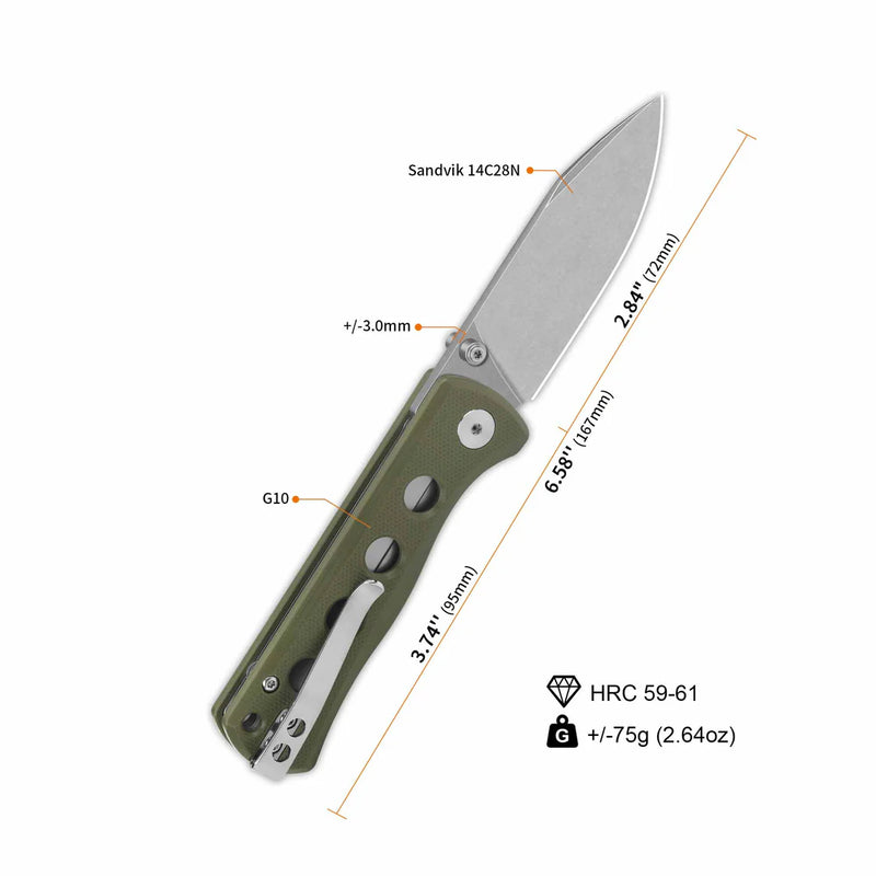QSP Knife Canary folder 2.84'' 14C28N Olive Green G10 QS150-F1