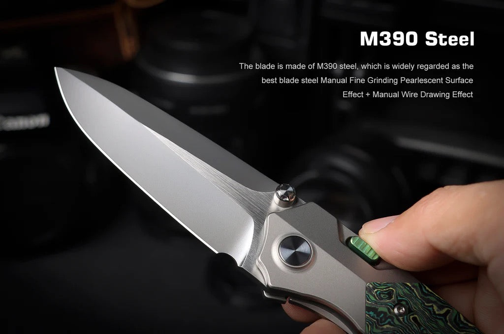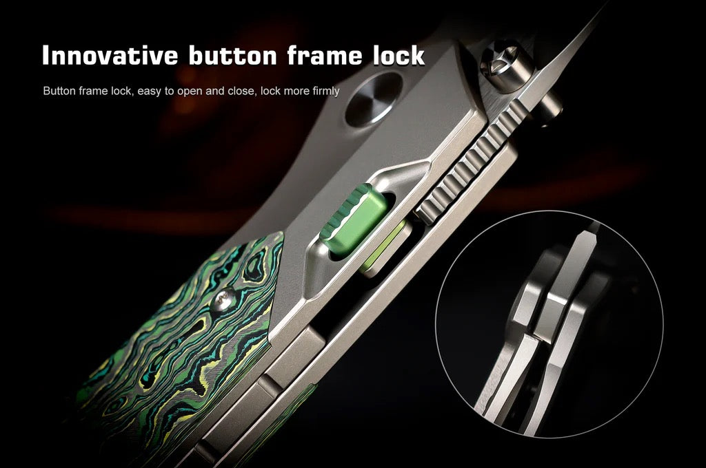Created by the REMETTE team, it adopts a novel and highly stable button + frame lock structure. The blade uses the leading M390 steel, and the handle uses high-end titanium + carbon fiber material! High-precision processing combined with excellent assembly and manufacturing technology makes every Part show the quality of shining meteors!