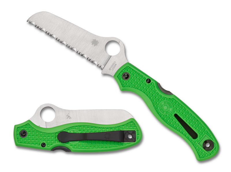Also available in an aggressive SpyderEdge™ configuration, its blade is full-flat ground for low-friction cutting performance and is supported by a sturdy back lock mechanism. The lightweight handle is injection-molded in the distinctive green color of the LC200N series and is home to a reversible pocket clip that provides ambidextrous tip-up carry.