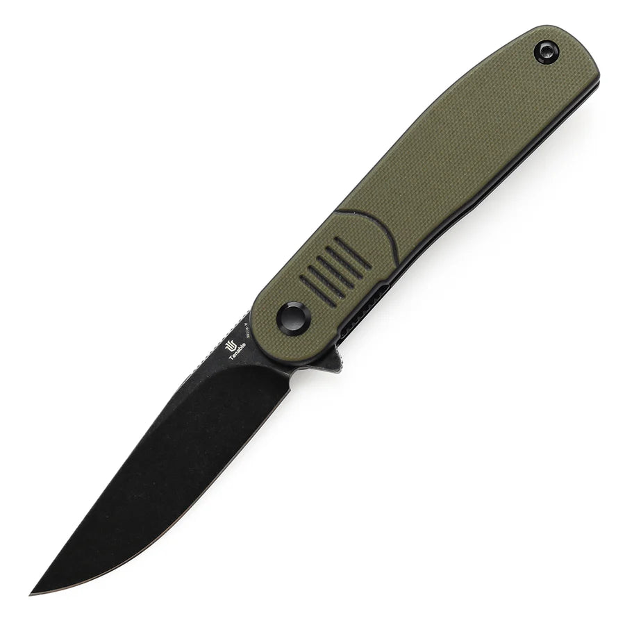 Tenable Einar Folding Knife 3.13" Blackwash Nitro-V Blade, Olive Green & Black G10 Handle - T2072A1