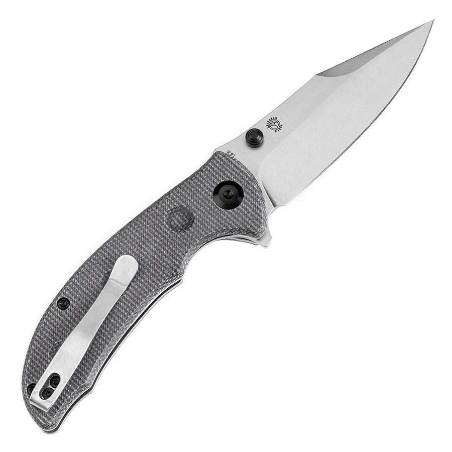 Tenable Rei T1061A3 – 3.3" Stonewashed 14C28N Blade, Black Micarta Handle with Dimples and Liner Lock