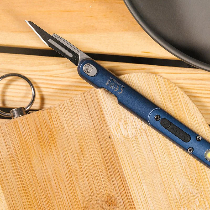Small with Multifunction: A penlight weighs only 47g, E62 features a mini scabbard, surgical blade, led light, and an attack head, a useful tool for everyday carry.